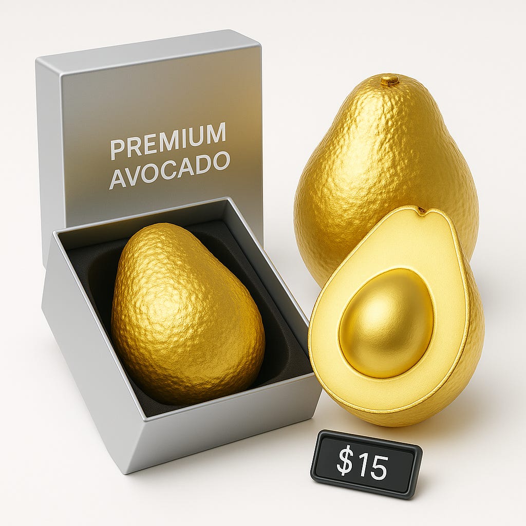 Para el CEO de una empresa que factura $500M anuales, tus aguacates premium cuestan $15 cada uno con packaging de lujo y entrega en menos de 4 horas.
