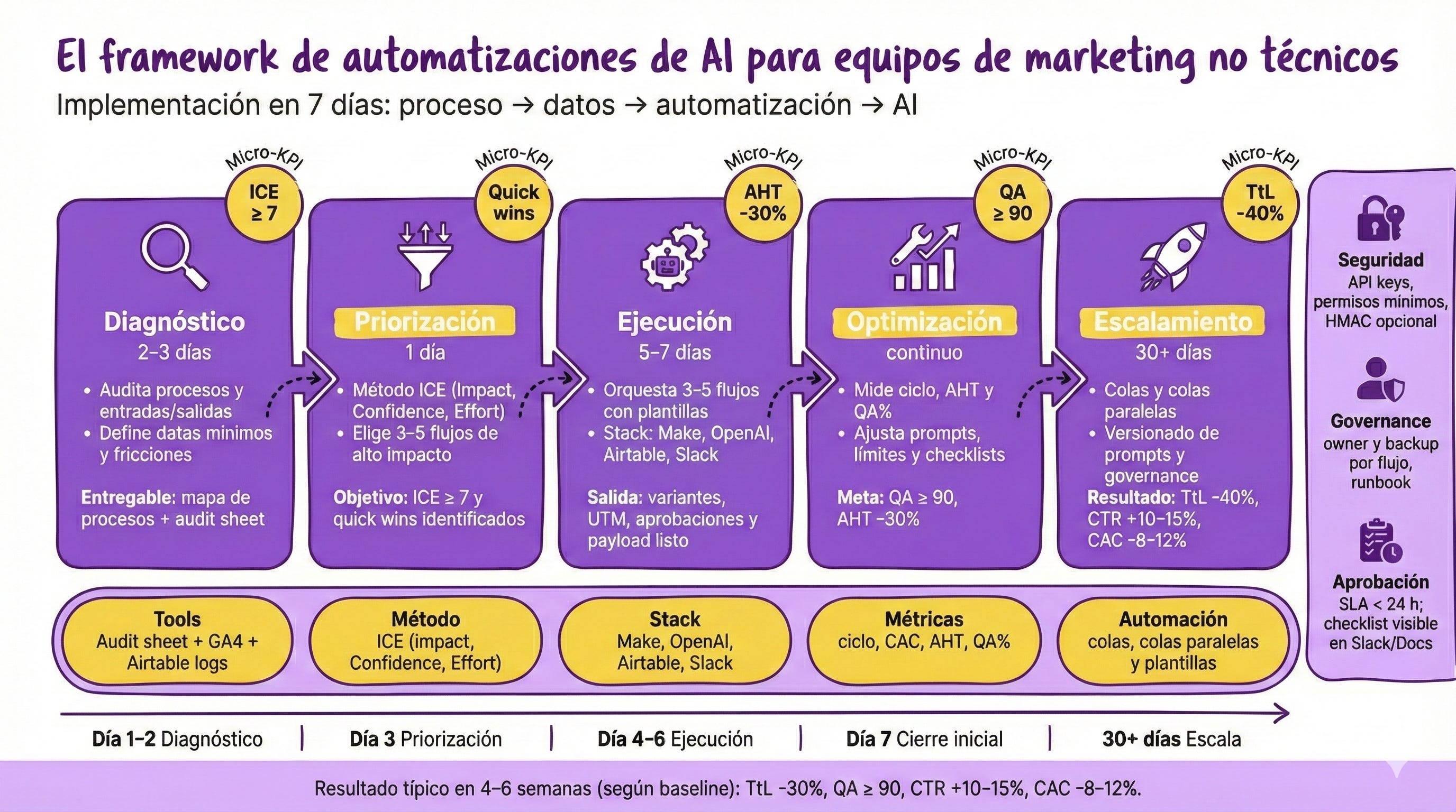 El framework de automatizaciones de AI para equipos de marketing no técnicos